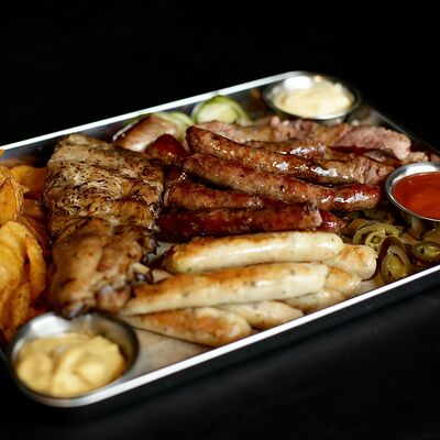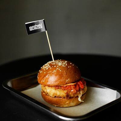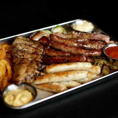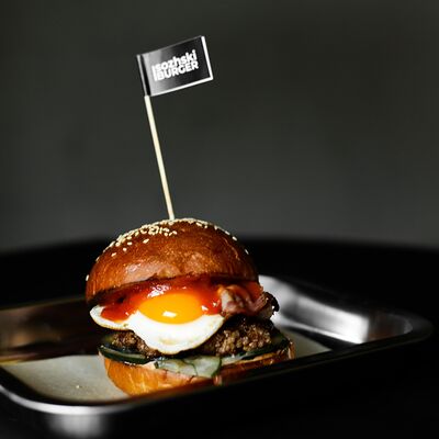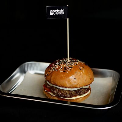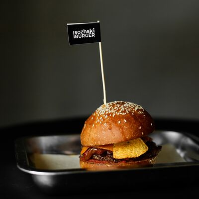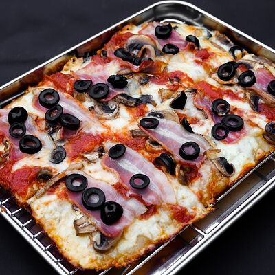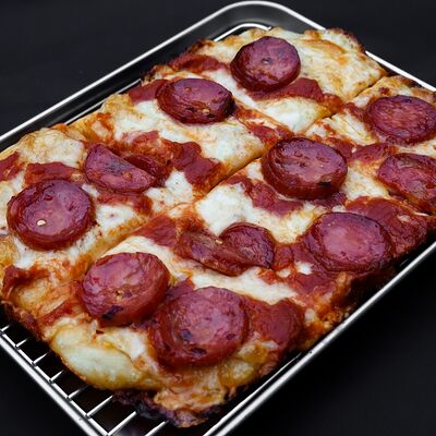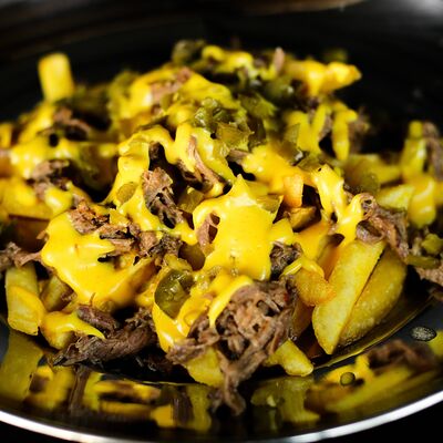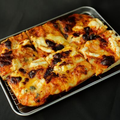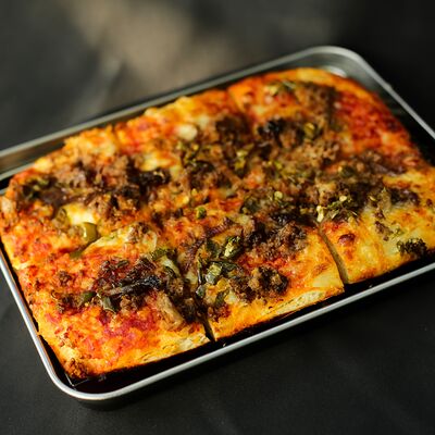 Тесто для пиццы, соус томатная паста, сыр моцарелла, оливковое масло, рваная говядина, луковый мармелад, перец халапеньо (24 см)