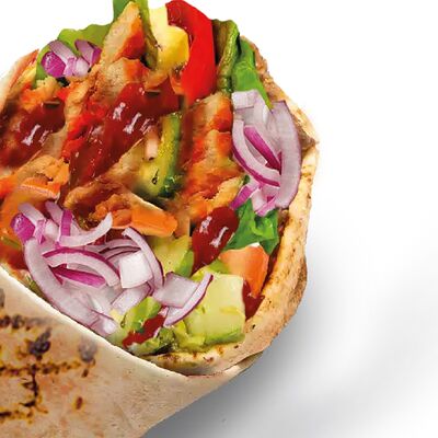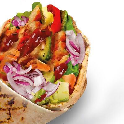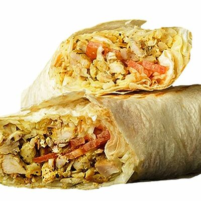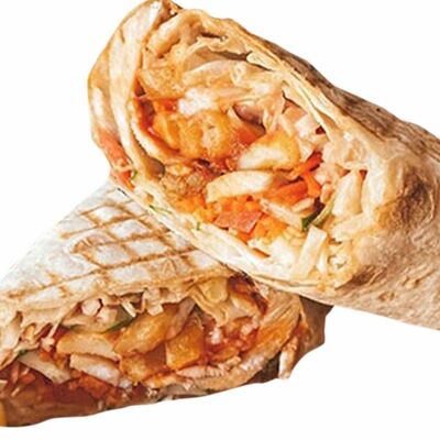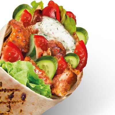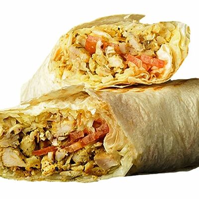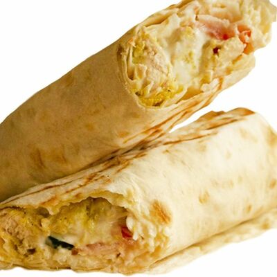 Лаваш, чесночный соус, сыр, капуста, томат, огурец, куриное филе