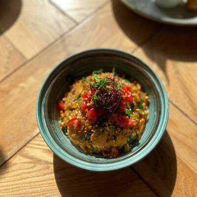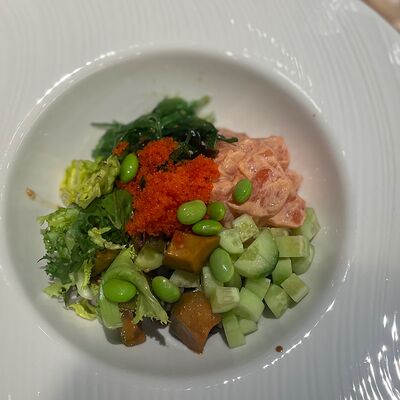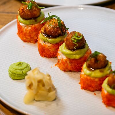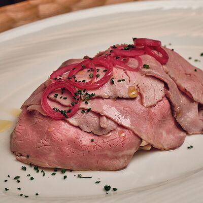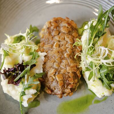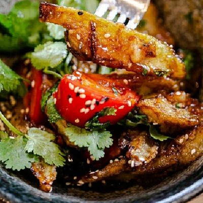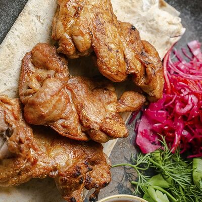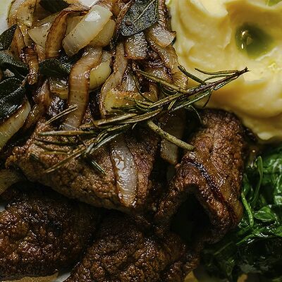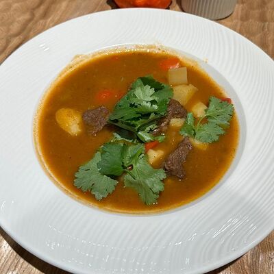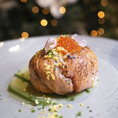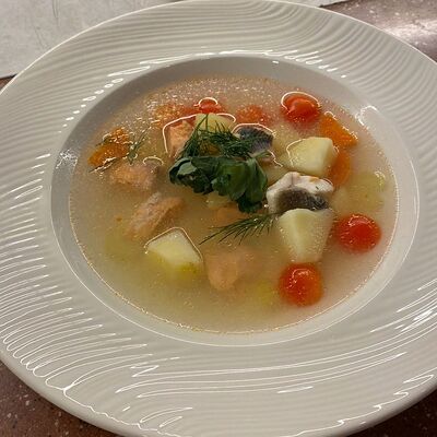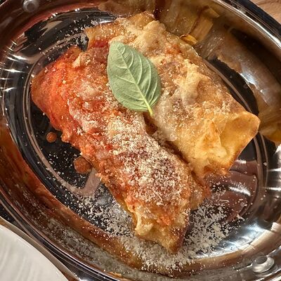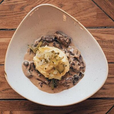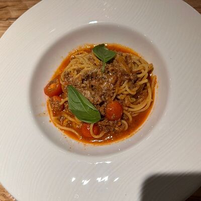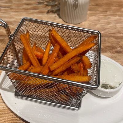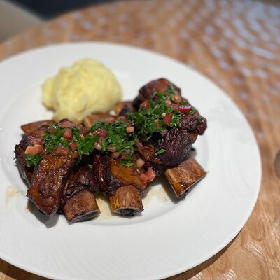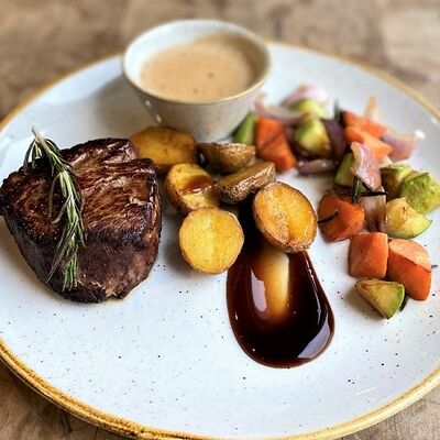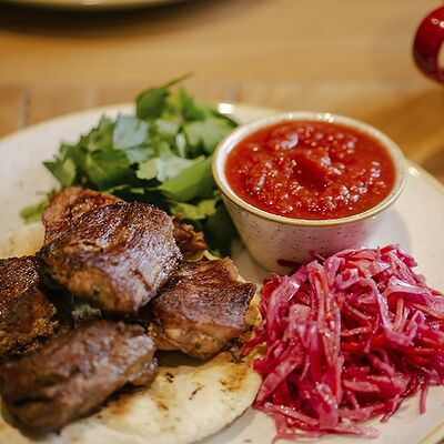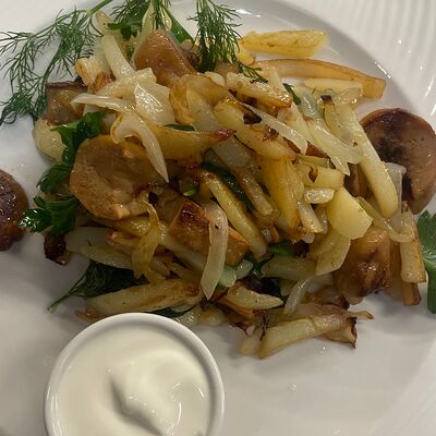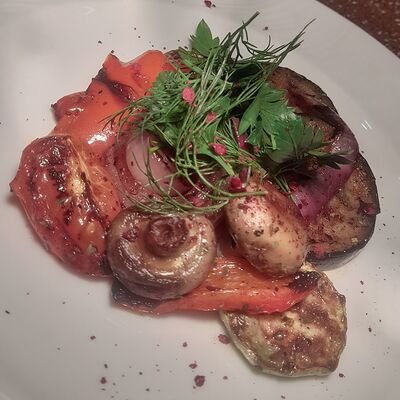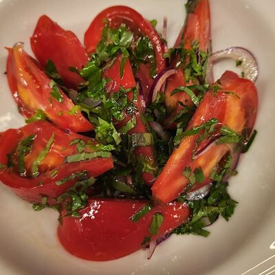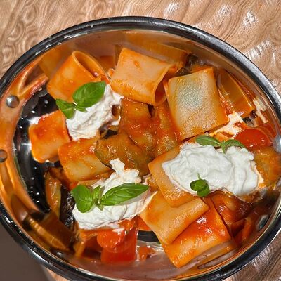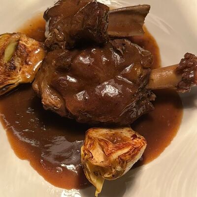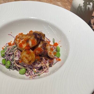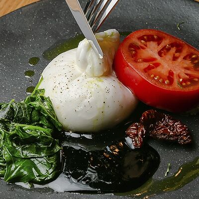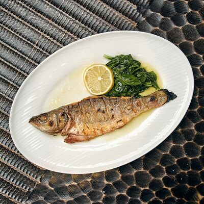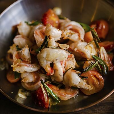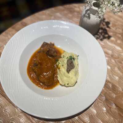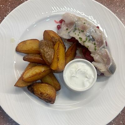 Осьминог на гриле с картофельными дольками в томатном соусе альята