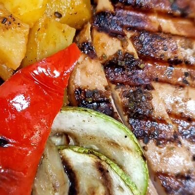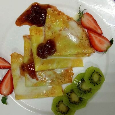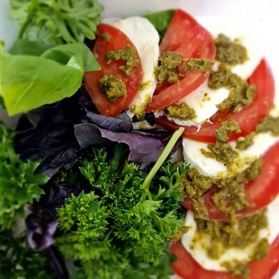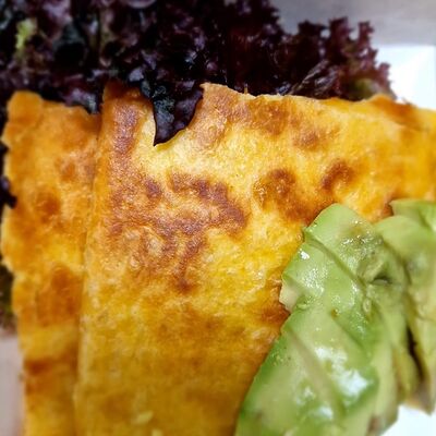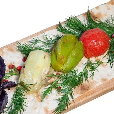 Пшеничная лепёшка, шампиньоны, сладкий перец, лук, сливки 33%, аджика домашняя, сметана, авокадо