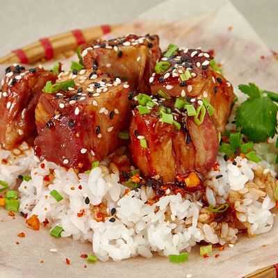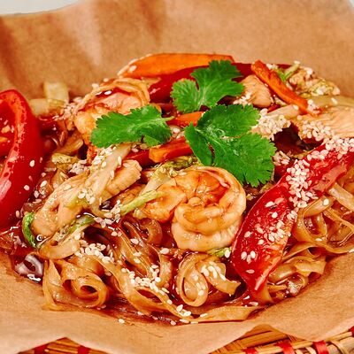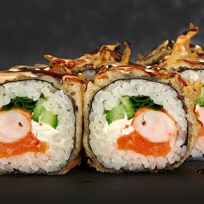 Хрустящая креветка с лососем и соусом манго доставка