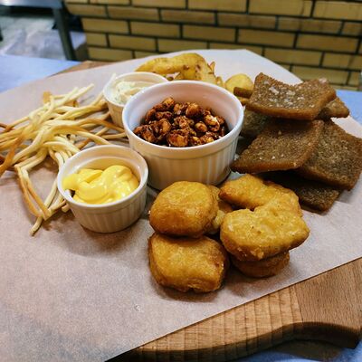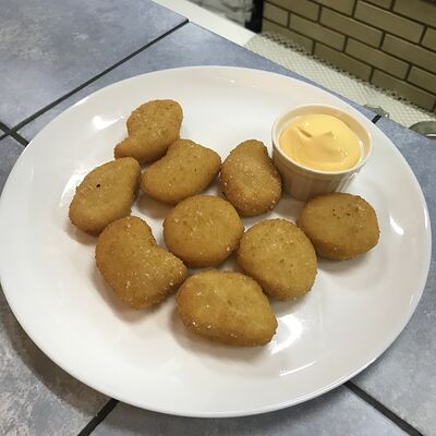 Королевские креветки в хрустящей панировке с сырным соусом (5 шт.)
