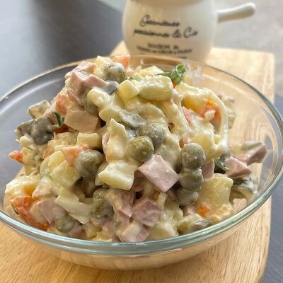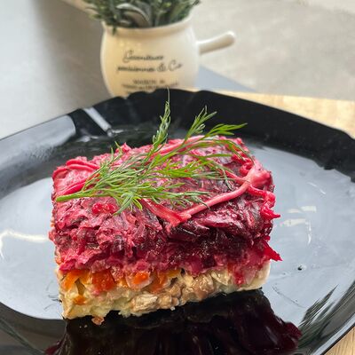 Картофель, морковь, свекла, сельдь соленая, яйцо отварное, лук репка, майонез