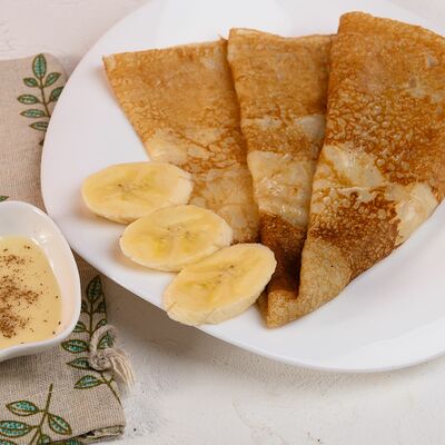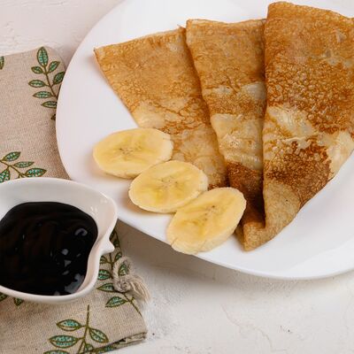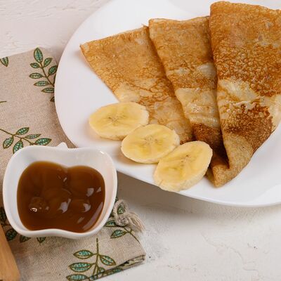 Блин, банан, топпинг карамельный