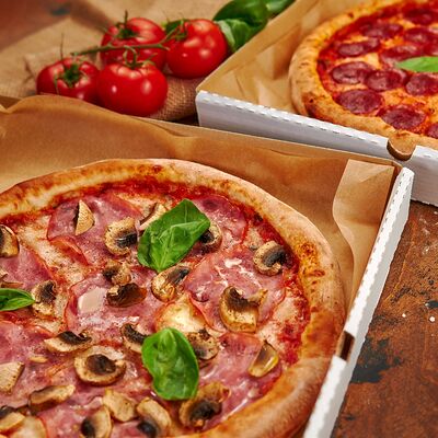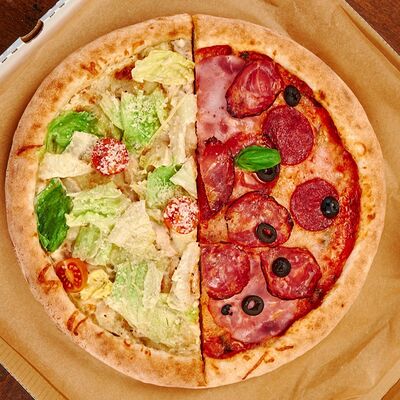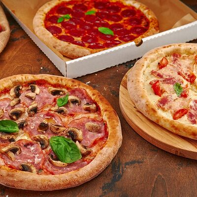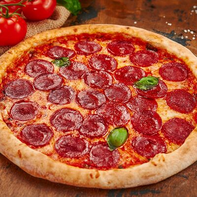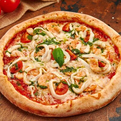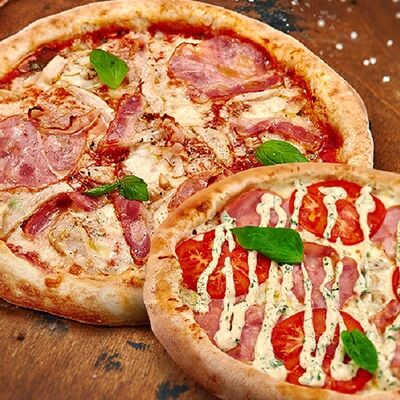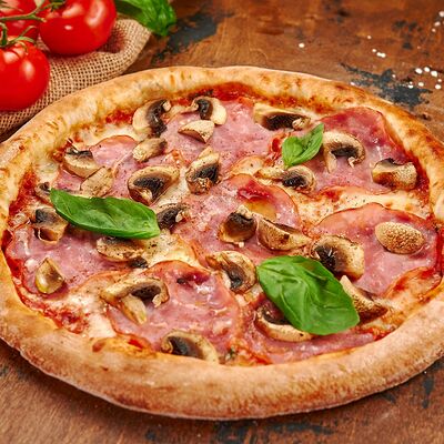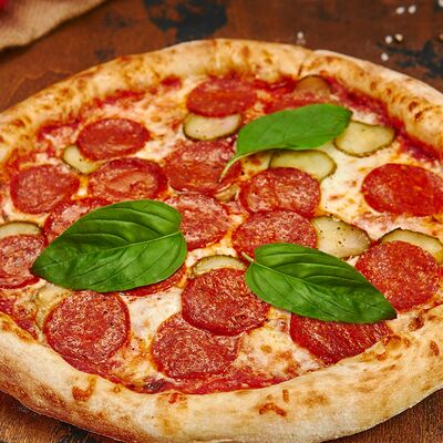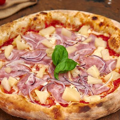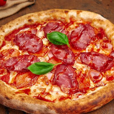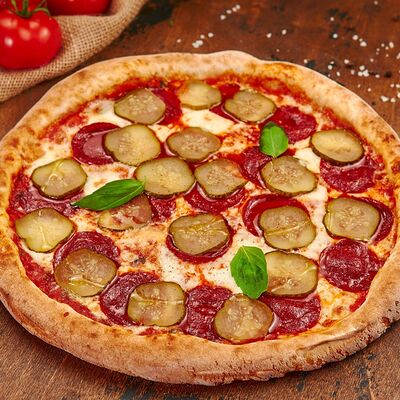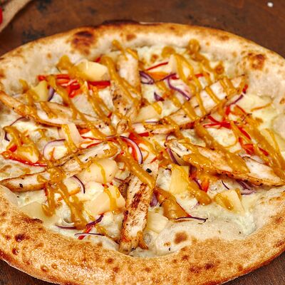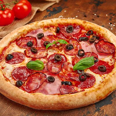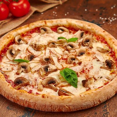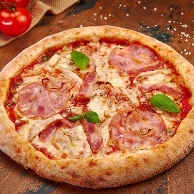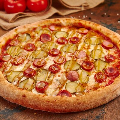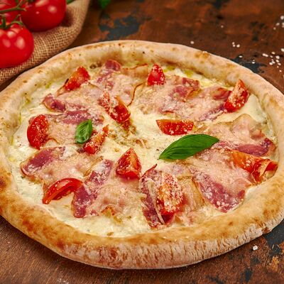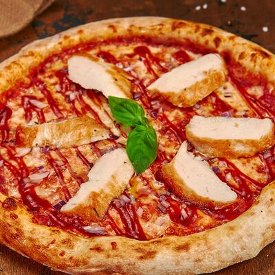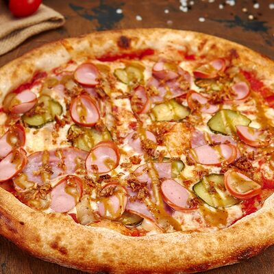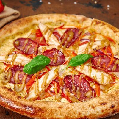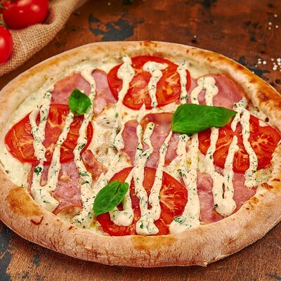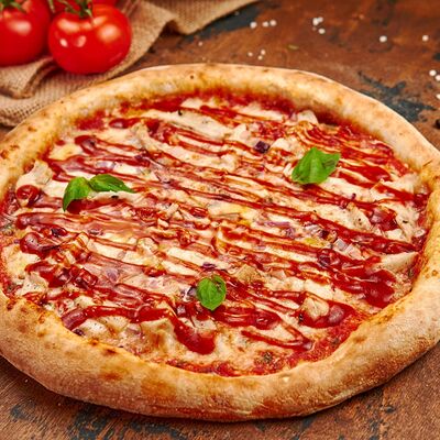 Сыр моцарелла, соус пилати, ветчина, куриное филе, бекон (30 см)