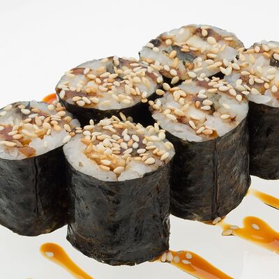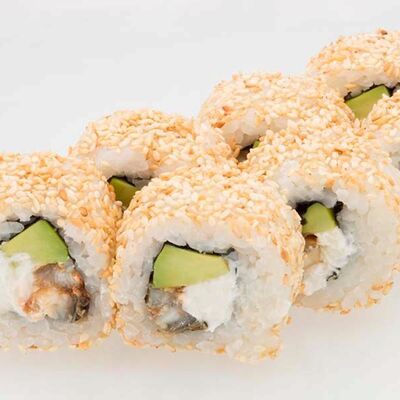 Угорь, авокадо, кунжут, сливочный сыр, рис, нори