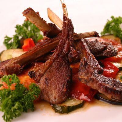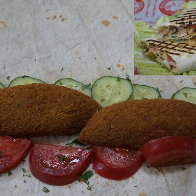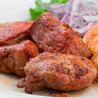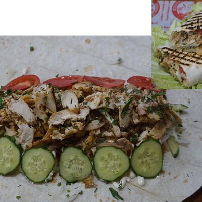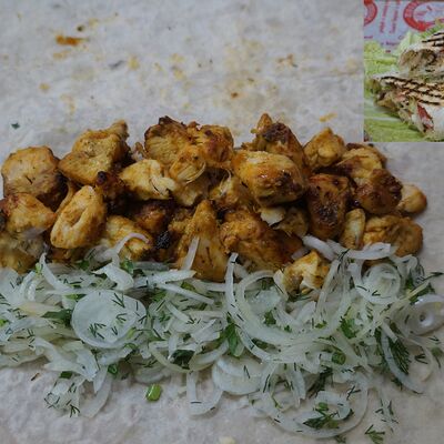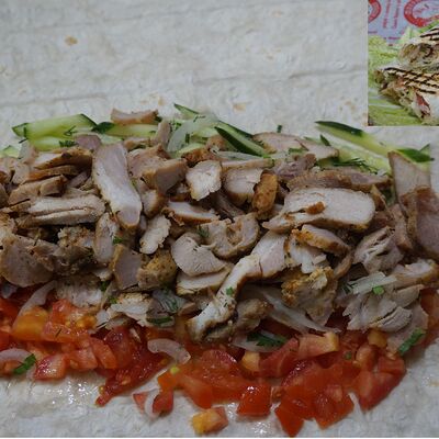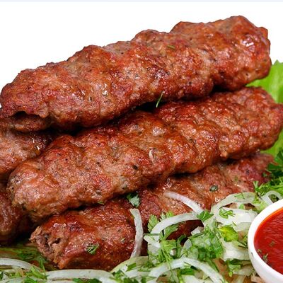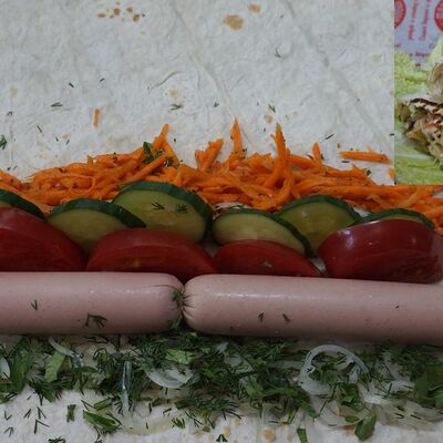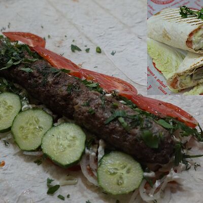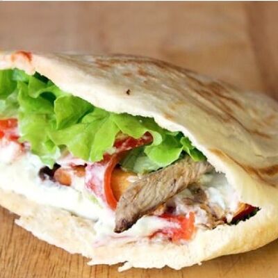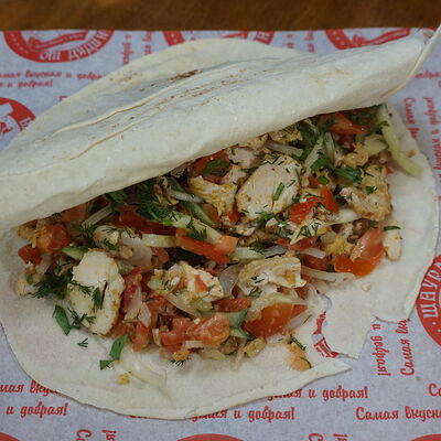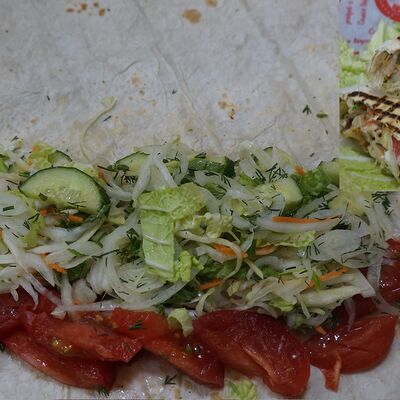 Баранина, свежий помидор, свежий огурец, лук, соус фирменный красный