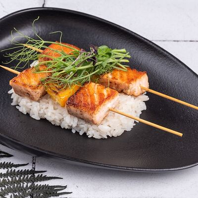 Лосось холодного копчения, сливочный сыр, нори, рис
