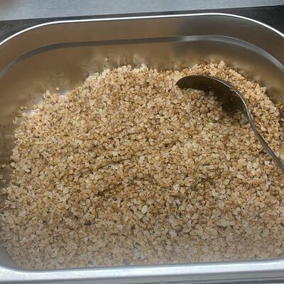 Корж медовый (мука, маргарин, мед, сахар, сода, ванилин), сметана, сахар, арахис жареный