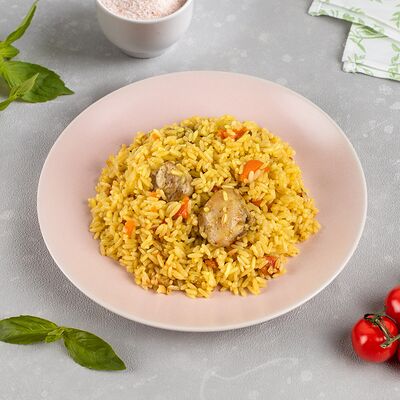 Говядина, окорок cвинoй, рис, яйцо куриное, сыр твердый, масло растительное, соль