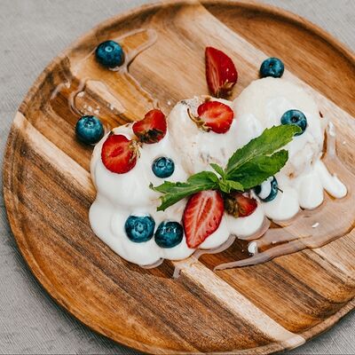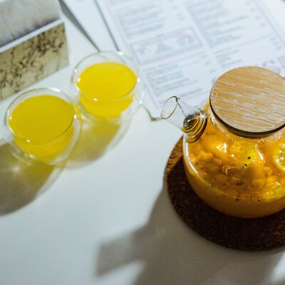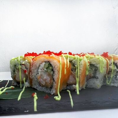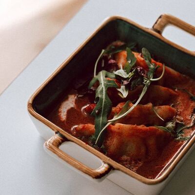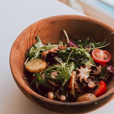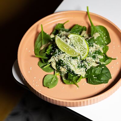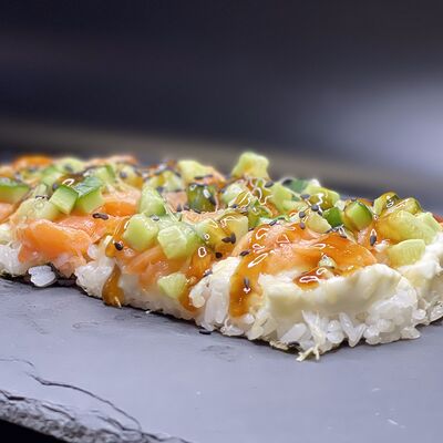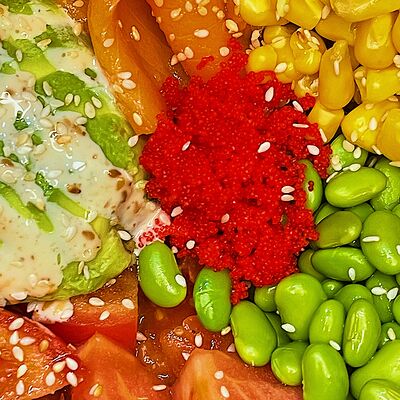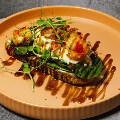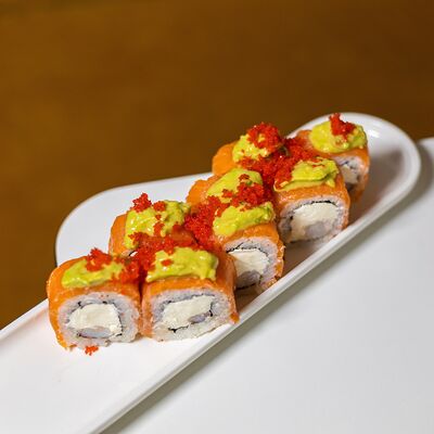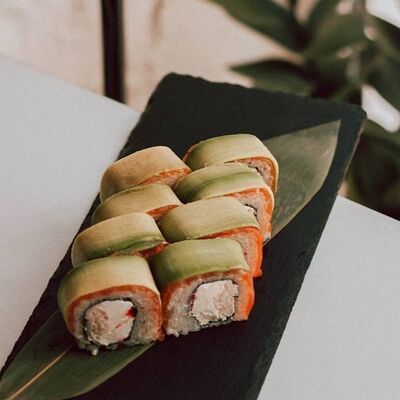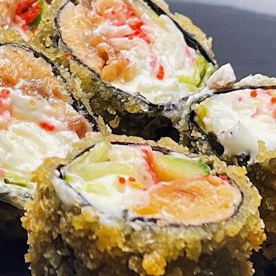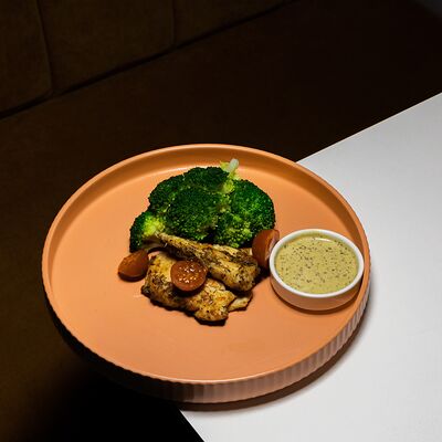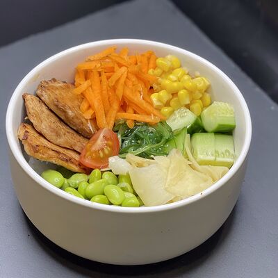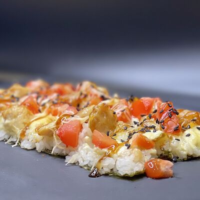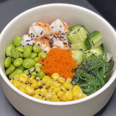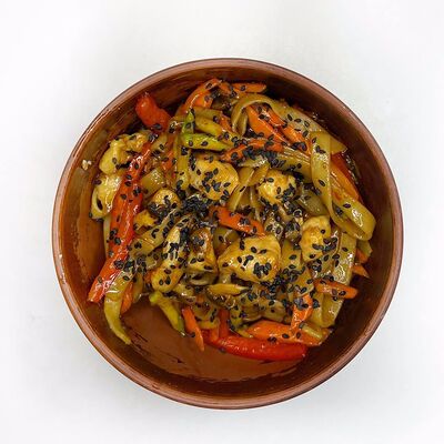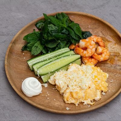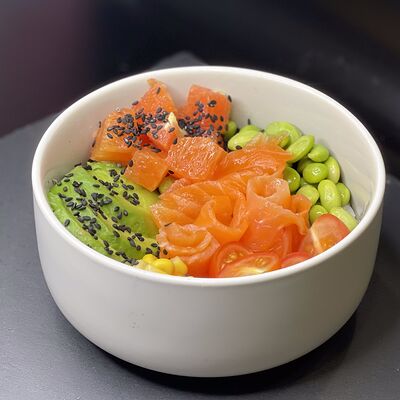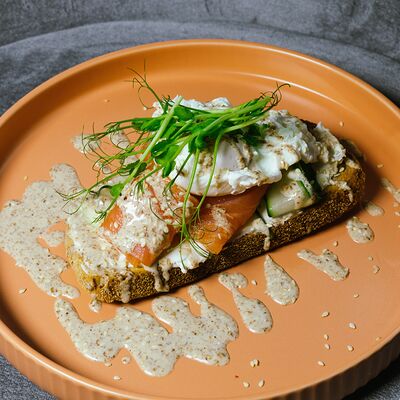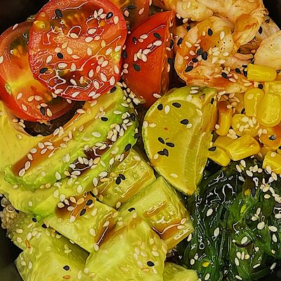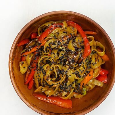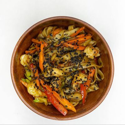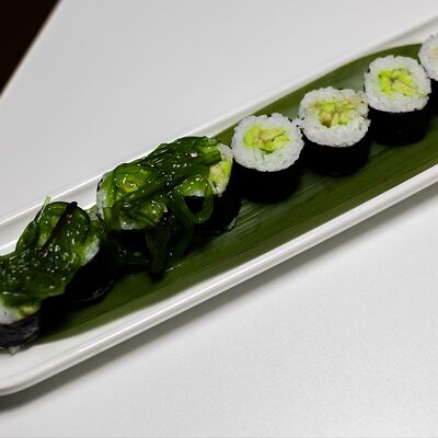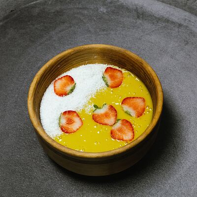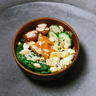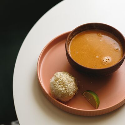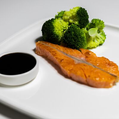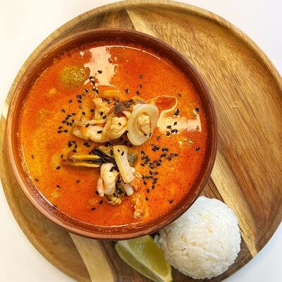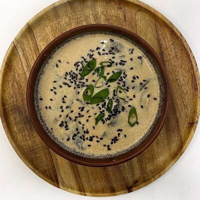 Бульон, мисо паста, лосось слабосоленый, сливки, вакамэ, кунжут, лук зеленый