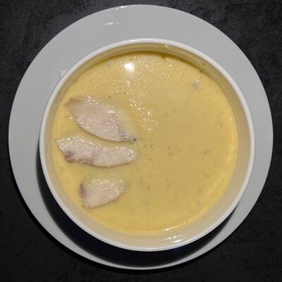 Овощной бульон, сливки, плавленый сыр, соль, молотый перец, лук, картофель, морковь, куриное филе
