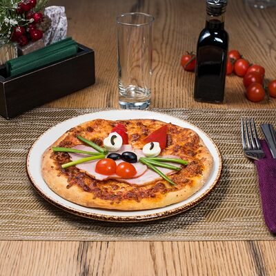 Пицца на тонком тесте с красным соусом из томатов в собственном соку, и сыром моцарелла Galbani (27см)
