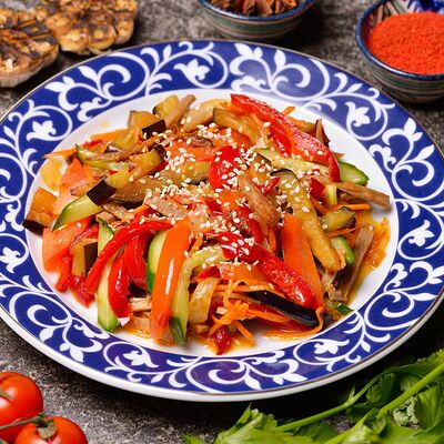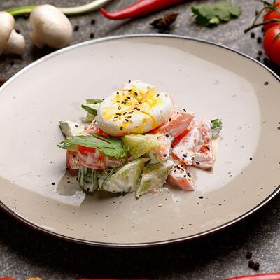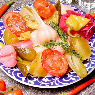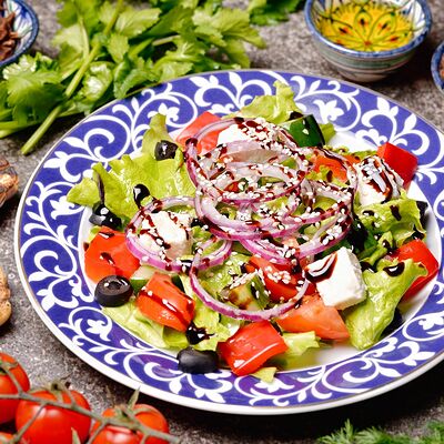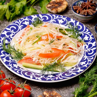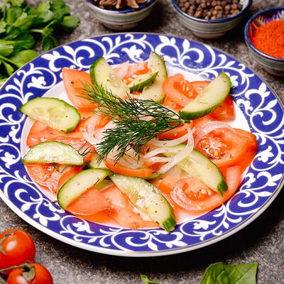 Огурец, помидор, лук, сухой базилик