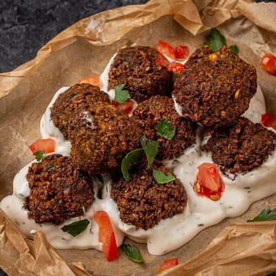 Фалафель в сметанном соусе с дольками томата