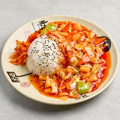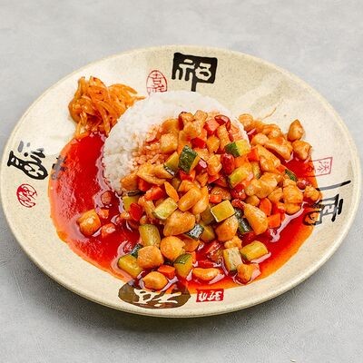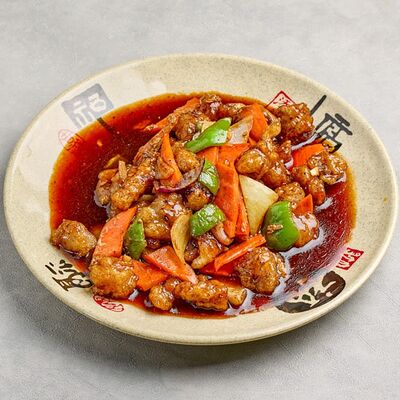 Жаренная в кляре курица в кисло-сладком соусе гоу бао жоу доставка