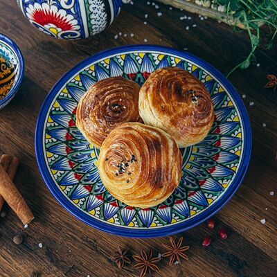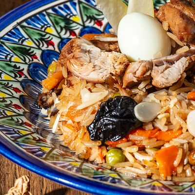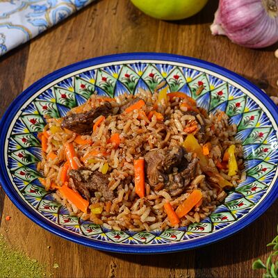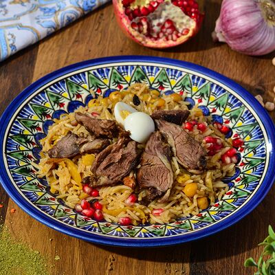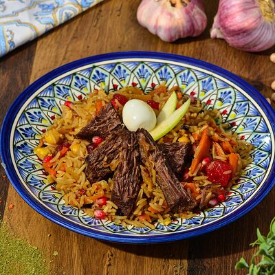 Узбекский рис, морковь, баранина, айва, горох, барбарис, изюм и ароматные специи. Вы попробуете его в традиционной подаче с гранатовыми зернами и яйцом - это станет истинным кулинарным путешествием в самое сердце Узбекистана. Не откладывайте на потом, заказывайте и попробуйте наш ташкентский плов уже сегодня. Вы когда-нибудь хотели отправиться в незабываемое кулинарное путешествие, которое оставит неповторимые воспоминания на всю жизнь? Наш ташкентский плов - это именно то, что вам нужно. Каждый кусочек баранины и каждое зерно риса обволакиваются сочным ароматом курдючного жира и хлопкового масла, создавая идеальное сочетание вкусов