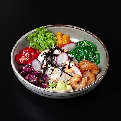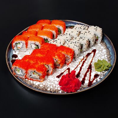 Креветка, рис, икра масаго, творожный сыр