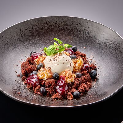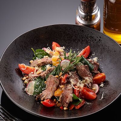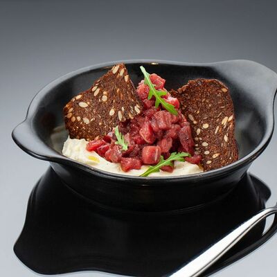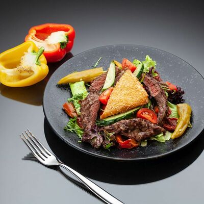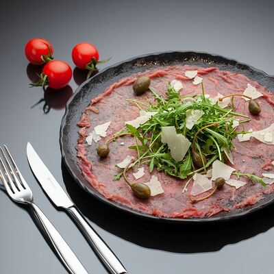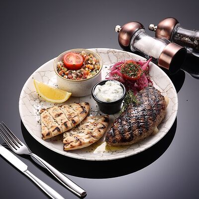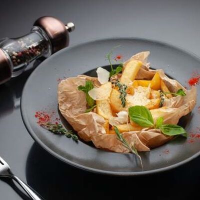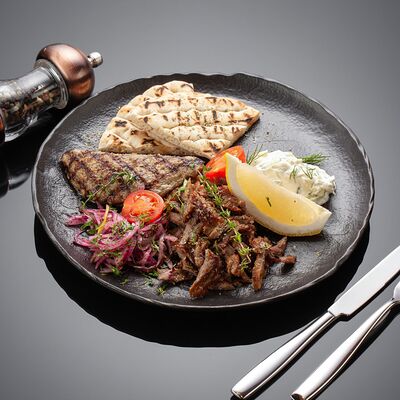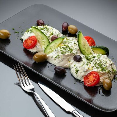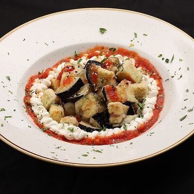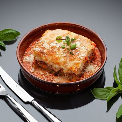 Традиционное блюдо из слоев фарша (свинина, говядина), картофеля, баклажанов, запечённых с сыром и соусом бешамель