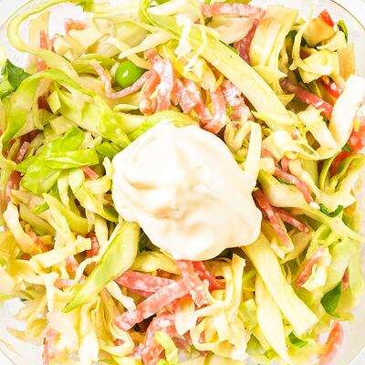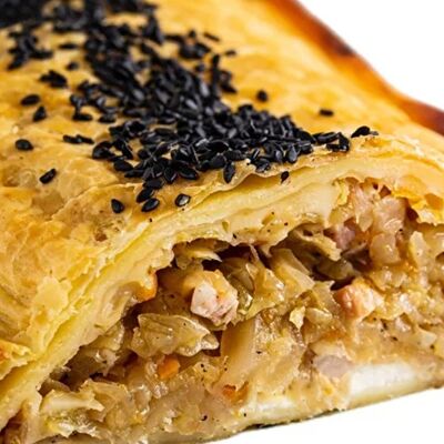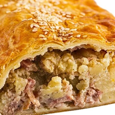 Мука пшеничная, вода, сыр брынза, помидор, окорок cвинoй варено-копченый, молоко ультрапастеризованное нормализованное, салат латук, горчица дижонская Кюне, сыворотка молочная сухая, масло растительное, соль экстра, дрожжи прессованные, сахар, спред растительно-жировой 82%, клейковина пшеничная, соус ворчестер