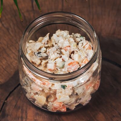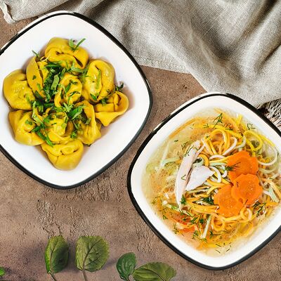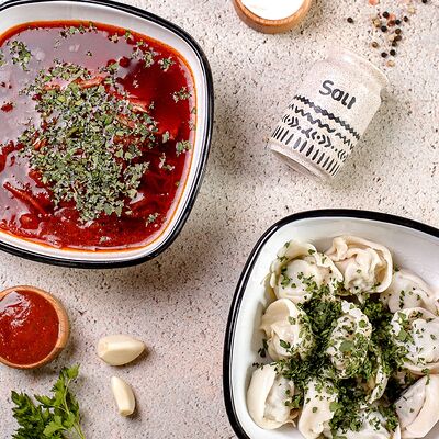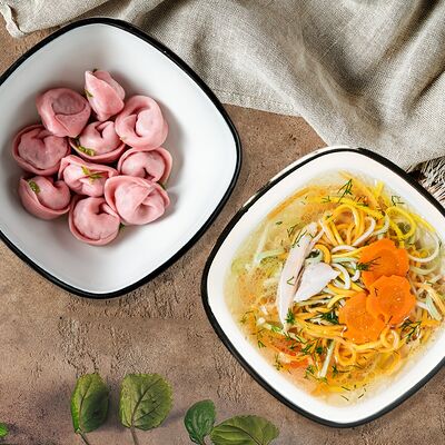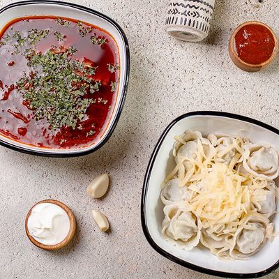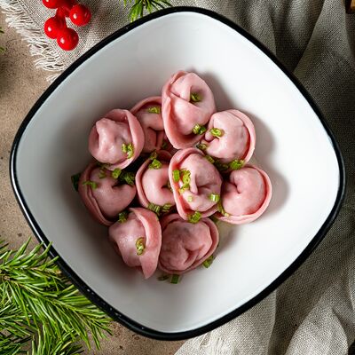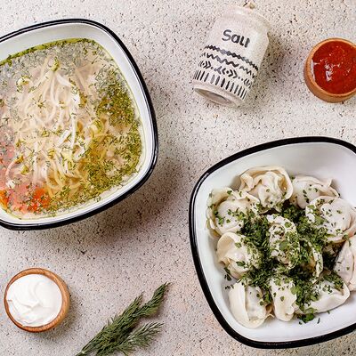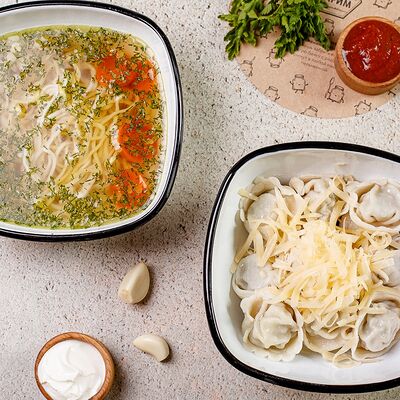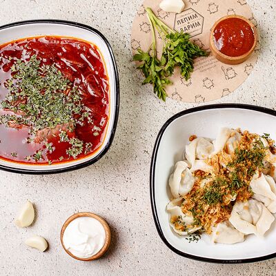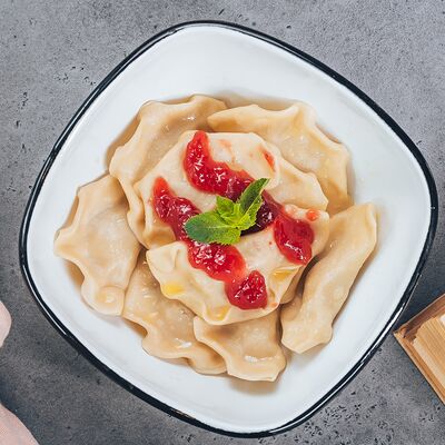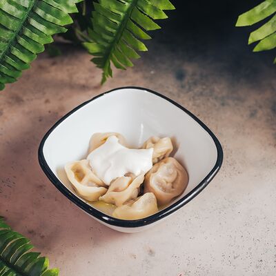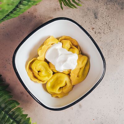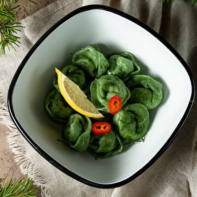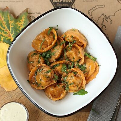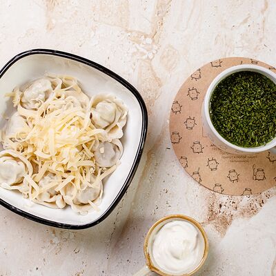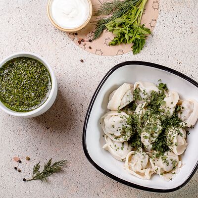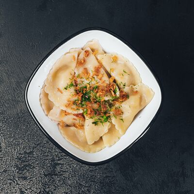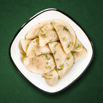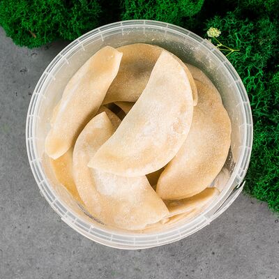 Мука пшеничная, вода, масло подсолнечное, соль, крахмал, картофель, лук фри, укроп, перец чёрный молотый