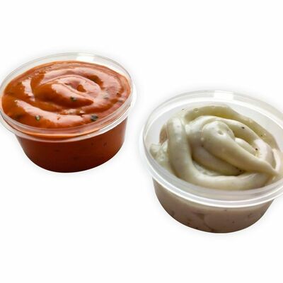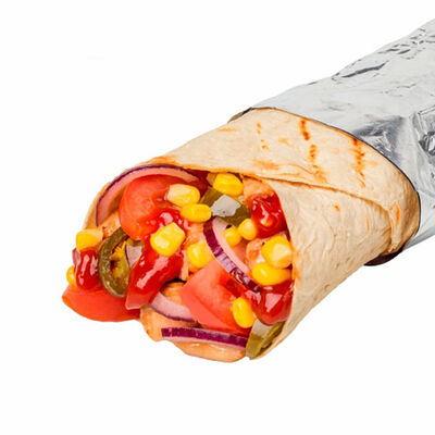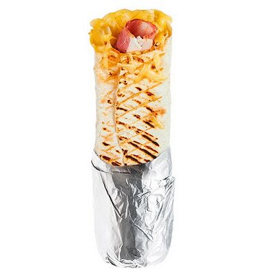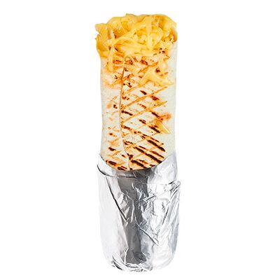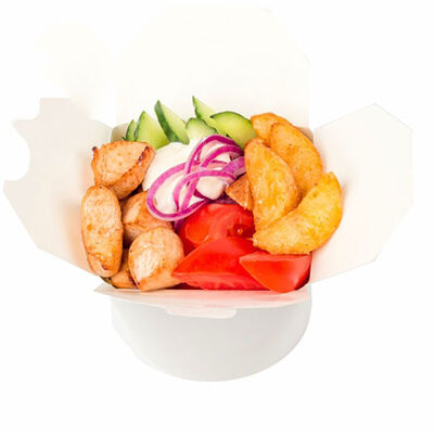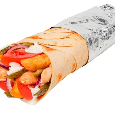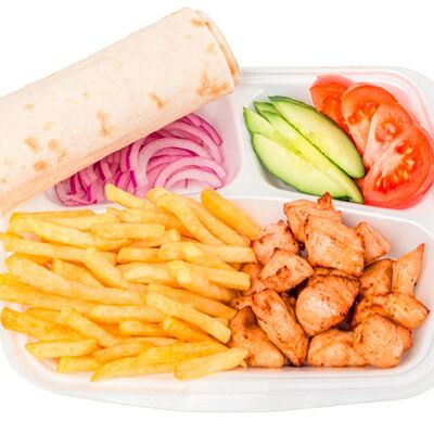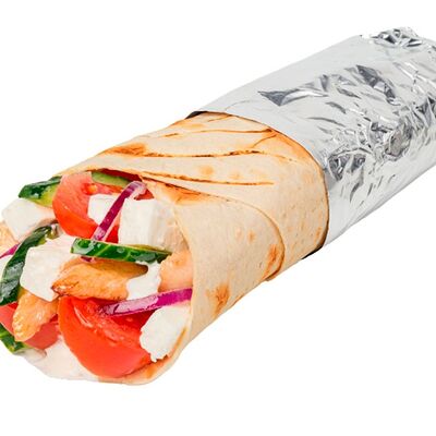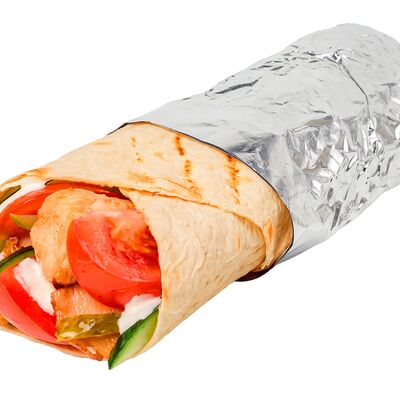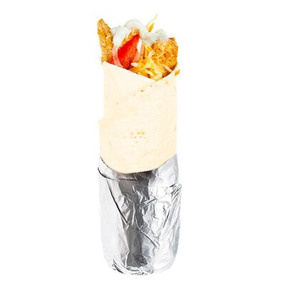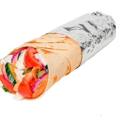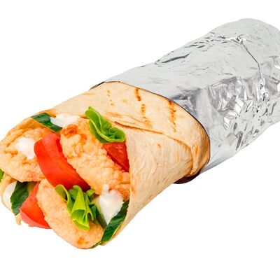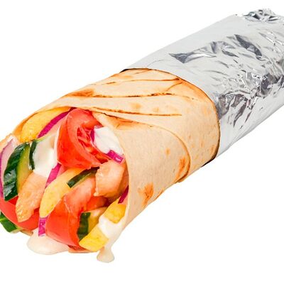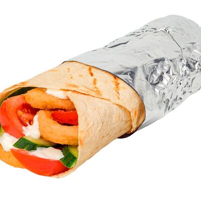 Креветки фри, свежие томат и огурец, лаваш, сливочно-чесночный соус