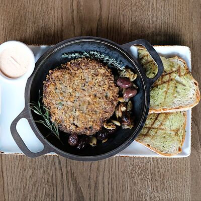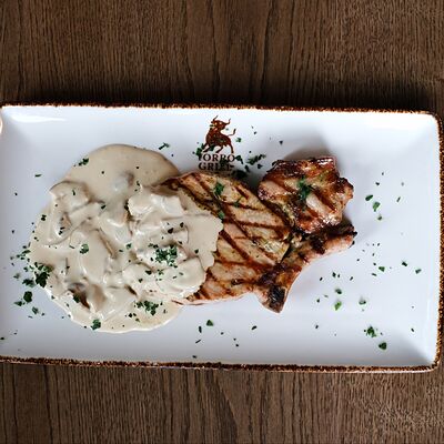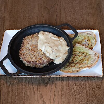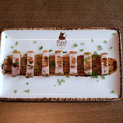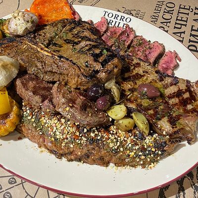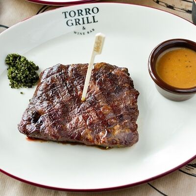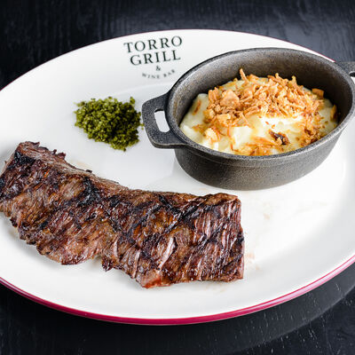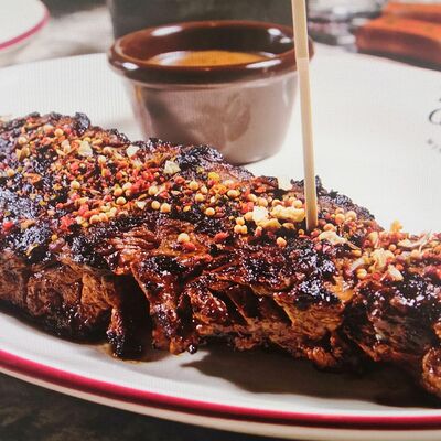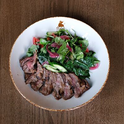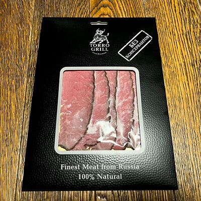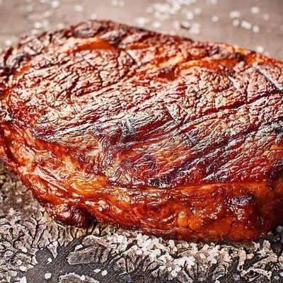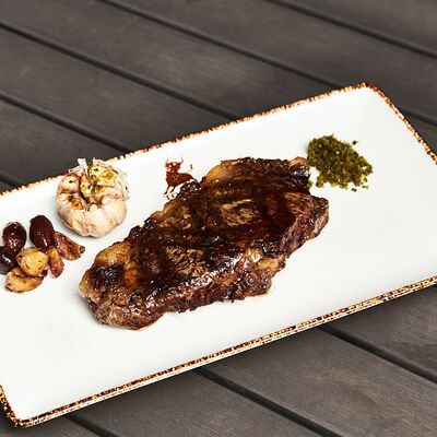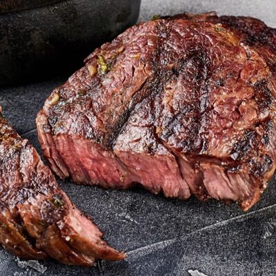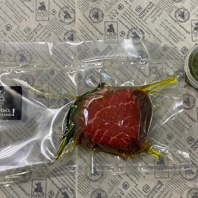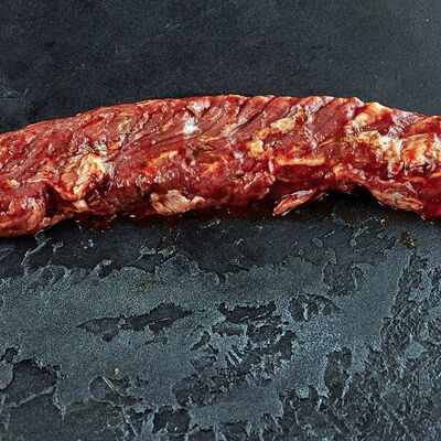Охлажденный стейк Мачете (внутренняя часть полутуши) с маслом и травами (розмарин). С ароматной солью (соль, перец, розмарин, чеснок, масло оливковое). Рекомендации по приготовлению: обжарить стейк на сковороде или гриле 2-3 минуты с каждой стороны на сильном огне, до образования румяной корочки, затем убавить огонь и довести стейк до желаемой прожарки: Medium - 4 минуты; Well done - 8 минут. Снять с огня и дать отдохнуть стейку в течение 2-х минут перед подачей. Добавьте зеленую соль и свежемолотый перец