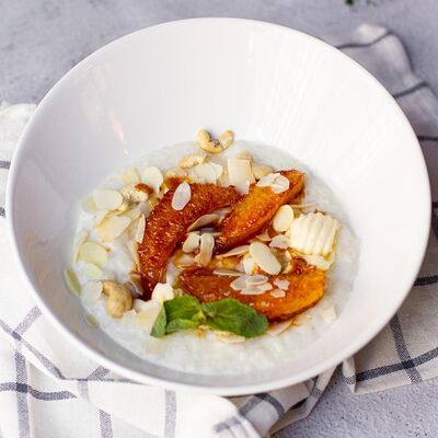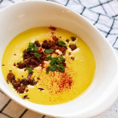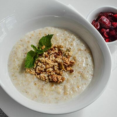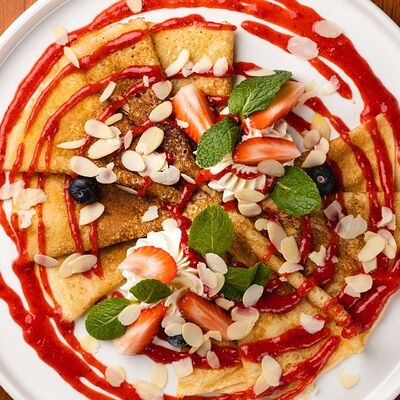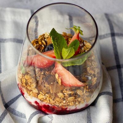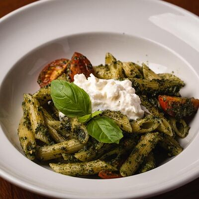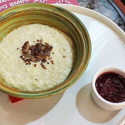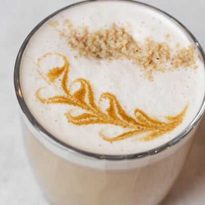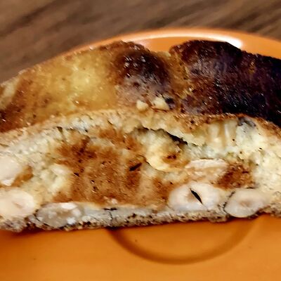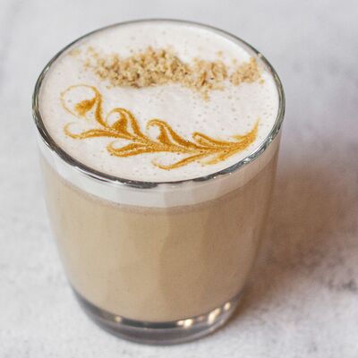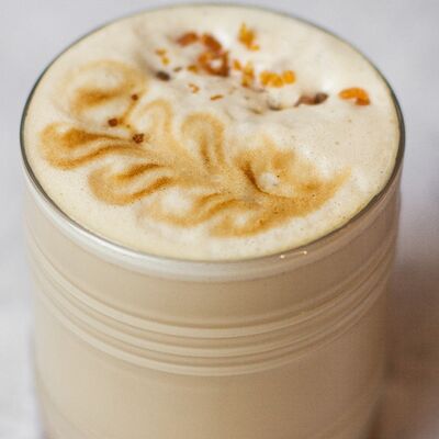 Соус на основе фундука с добавлением шоколада, сливки 10%, эспрессо одинарный. Сверху добавляется дробленый обжаренный фундук