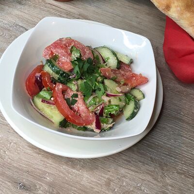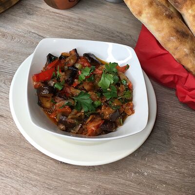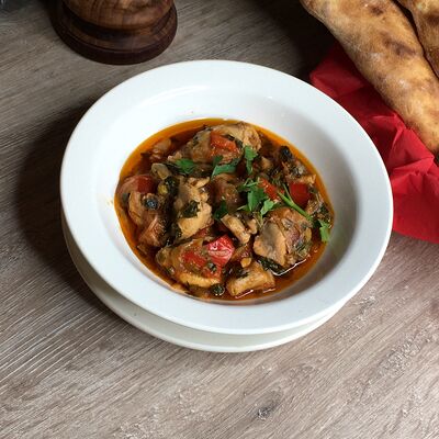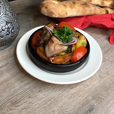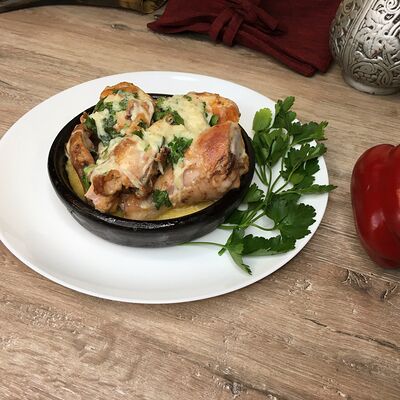 Бедро курицы, картошка, помидоры, зелень, лук, чеснок