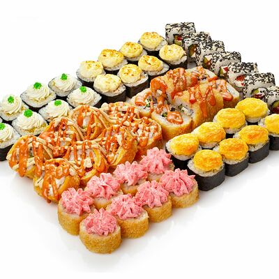 Рис, мицукан, сахар, комбу, соль, нори, лосось, лосось холодного копчения, огурец, мука, яйцо, сухари панировочные