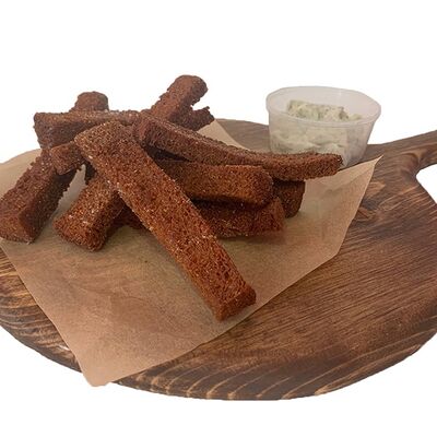 Из ржаного хлеба, жаренные во фритюре, чесночный соус