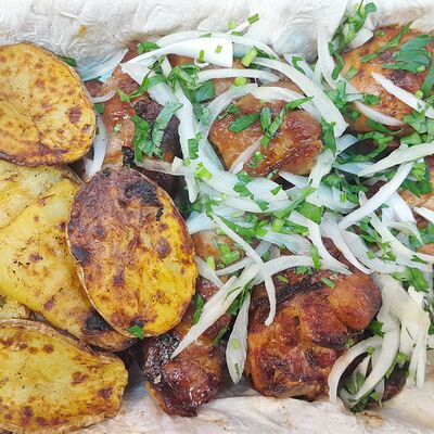Лаваш, люля-кебаб из телятины, лук, соус фирменный