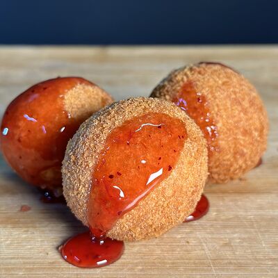 Моцарелла, паприка, яйцо куриное, вода, мука, соль, сухари панировочные, масло растительное (3 шт.)