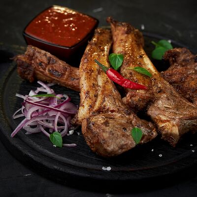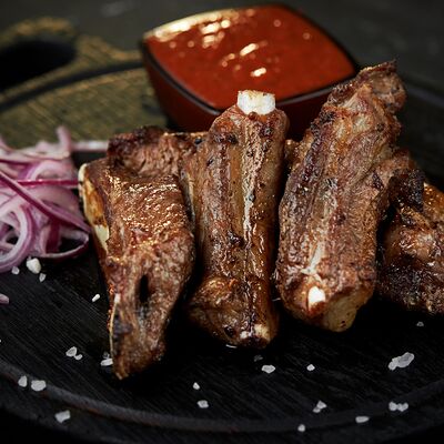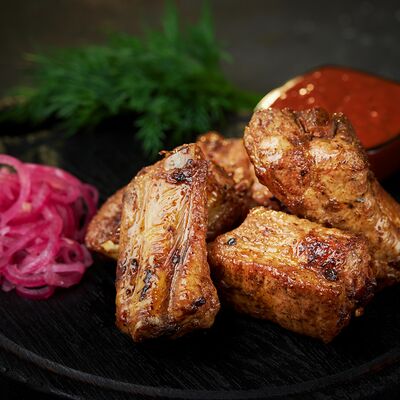 Свиные рёбра Соус шашлычный Лук /зелень