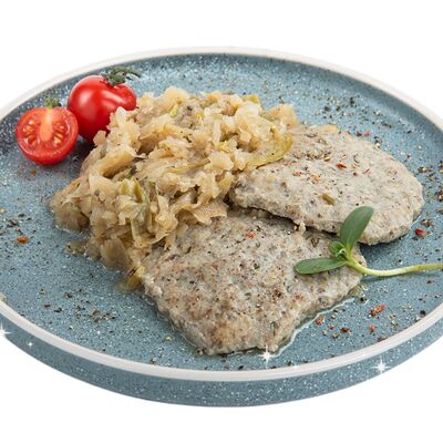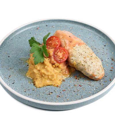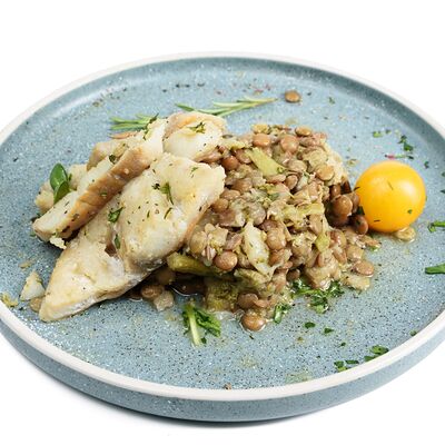 Котлеты из филе трески с овощным рагу и нутом доставка