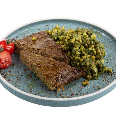 Треска (филе), кабачки, баклажаны, нут, лук репчатый, перец болгарский, капуста белокочанная, зеленый горошек, томатная паста, чеснок, зелень (укроп, петрушка, кинза), масло оливковое, яйцо, масло гхи (топленое), мука льняная, мука нутовая, соль, специи. Правильное низкокалорийное питание. Замороженный продукт. Способ приготовления: разогреть в микроволновой печи 5-6 минут