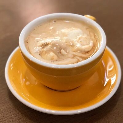 Ароматный чёрный кофе с добавлением шарика нежного пломбира