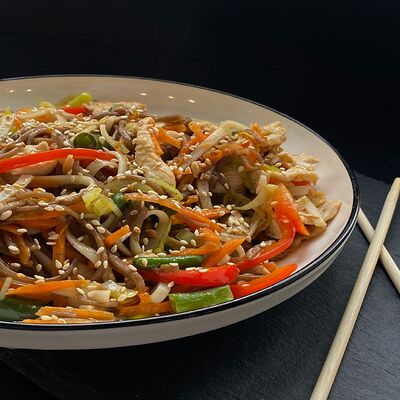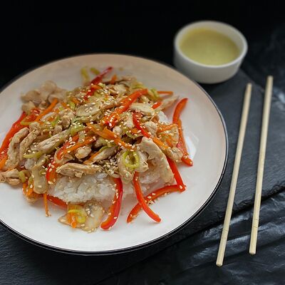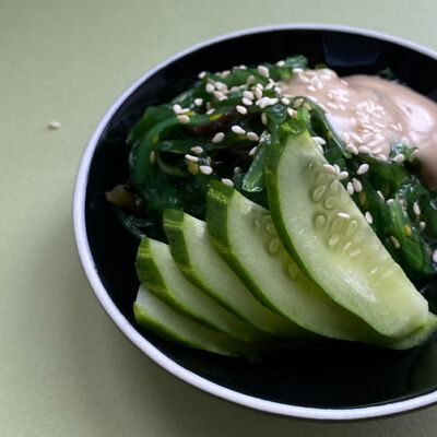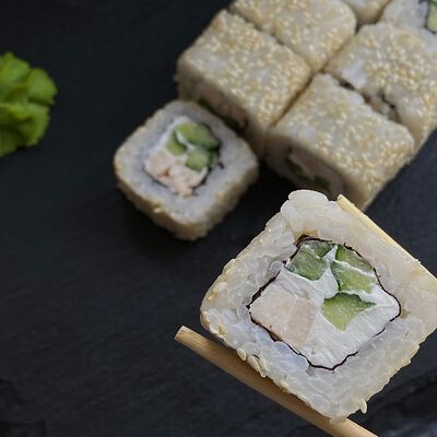 Огурец, курица холодного копчения, сливочный сыр, кунжут