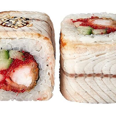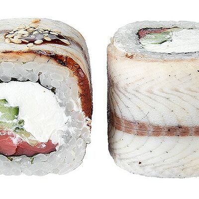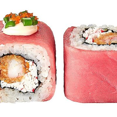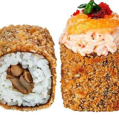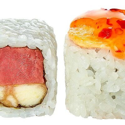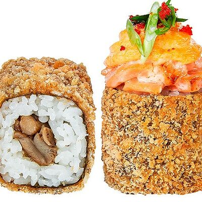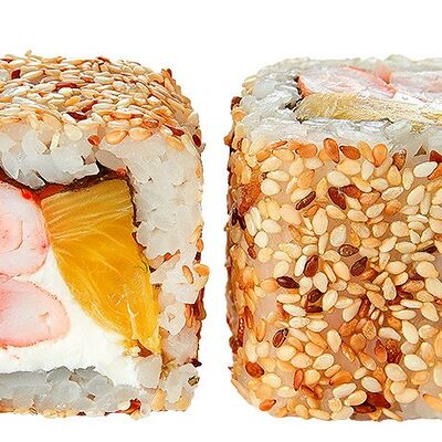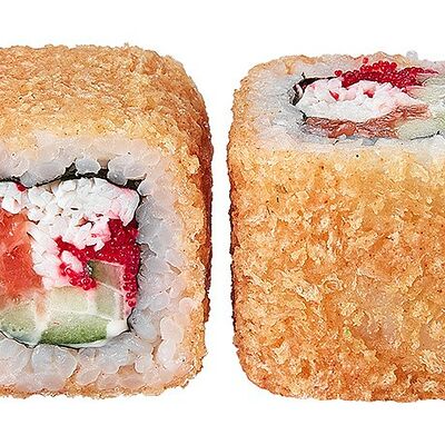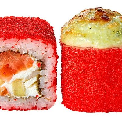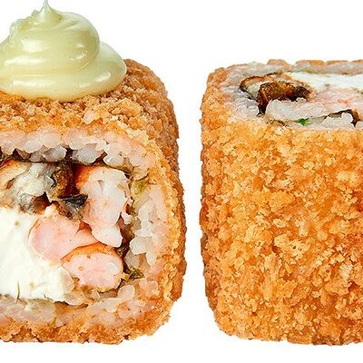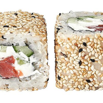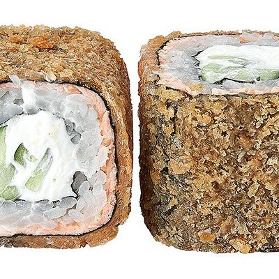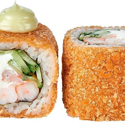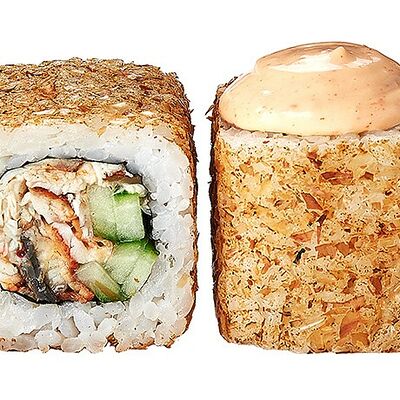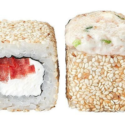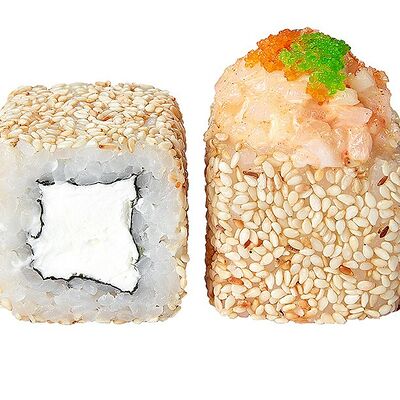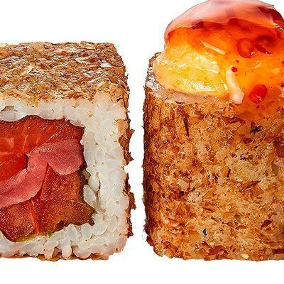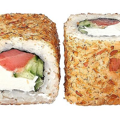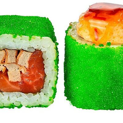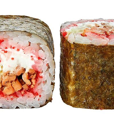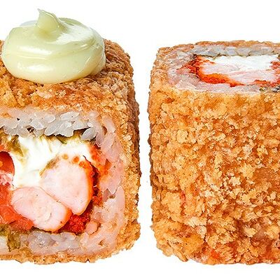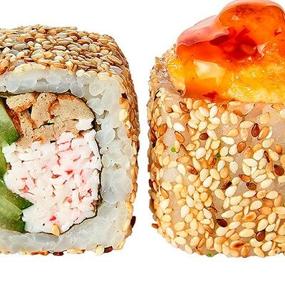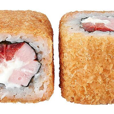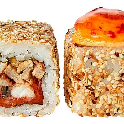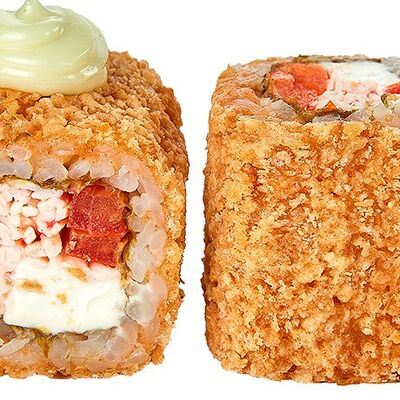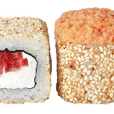 Пикантный запеченный ролл с нежной копченой курицей, сливочным мягким сыром, кунжутом и острым Спайси соусом