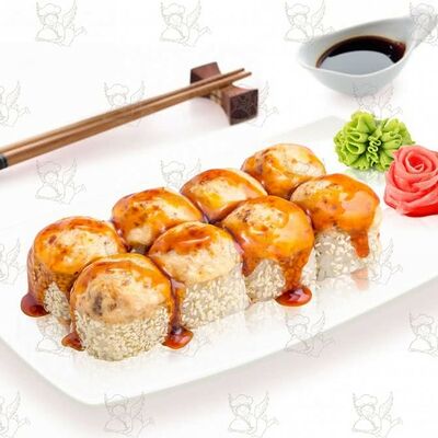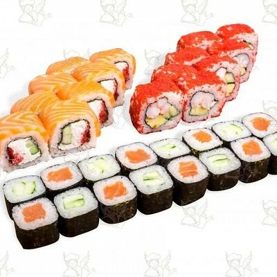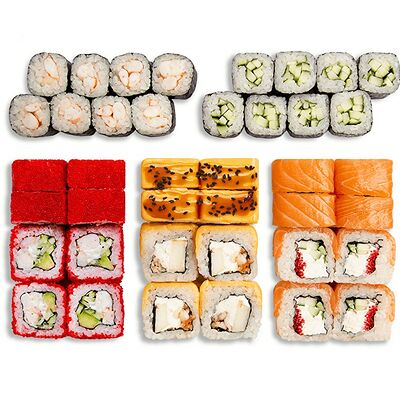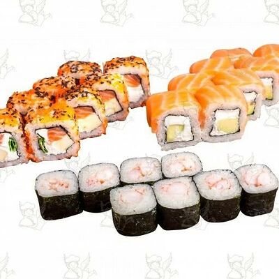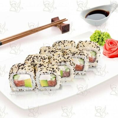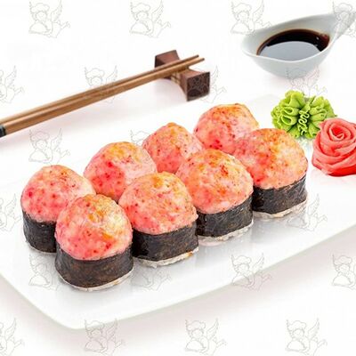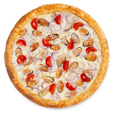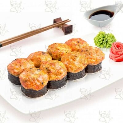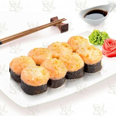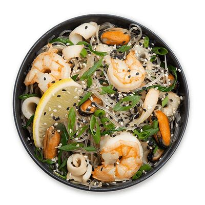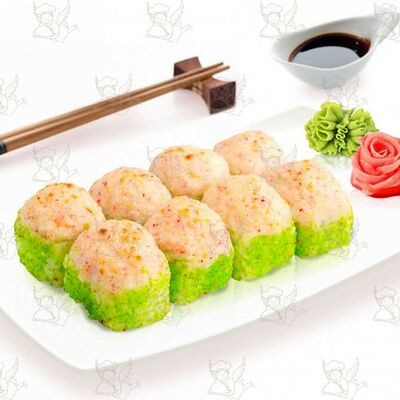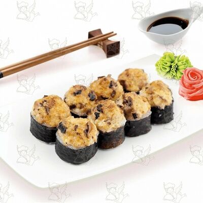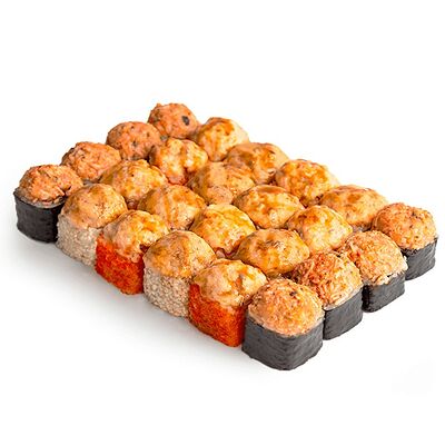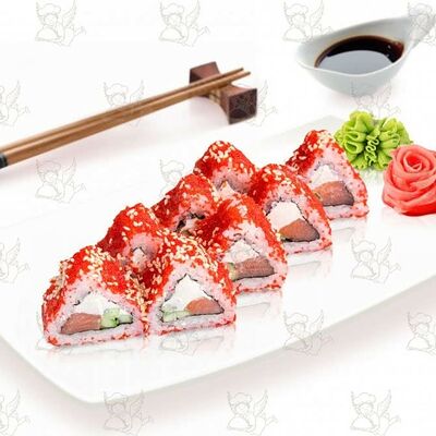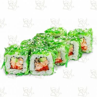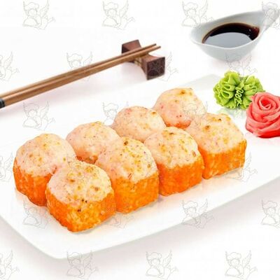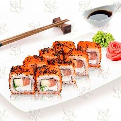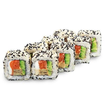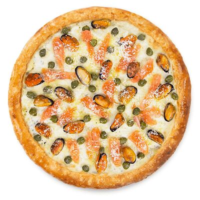 Мидии, бурый лосось, сыр креметта,, чука, икра тобико, соус, кунжут
