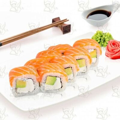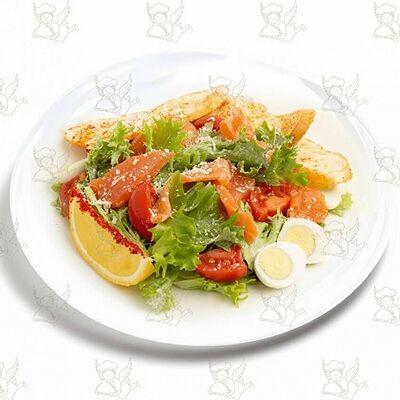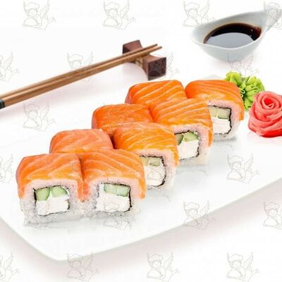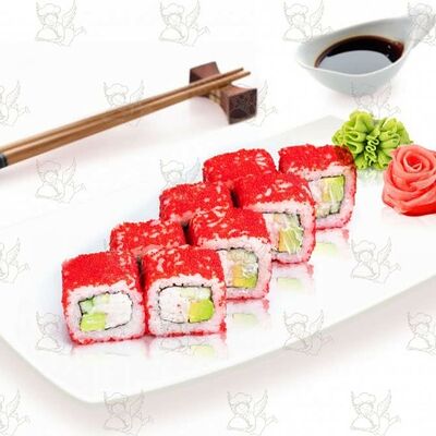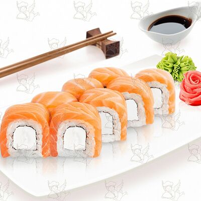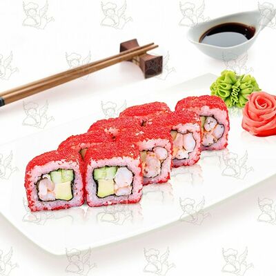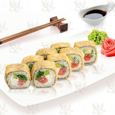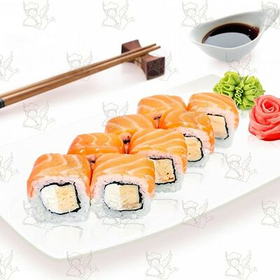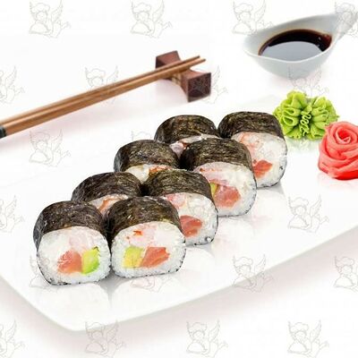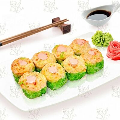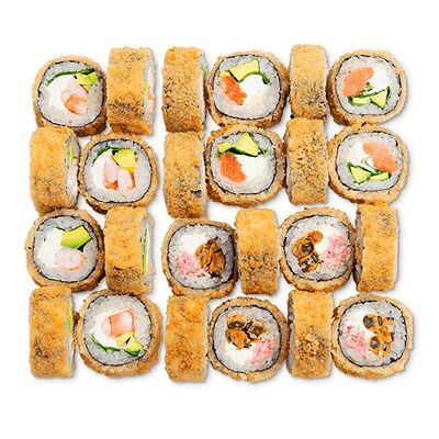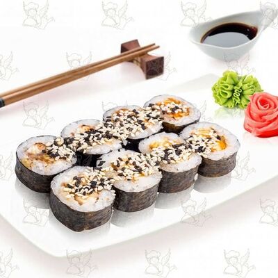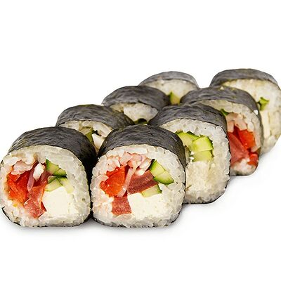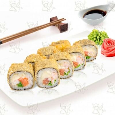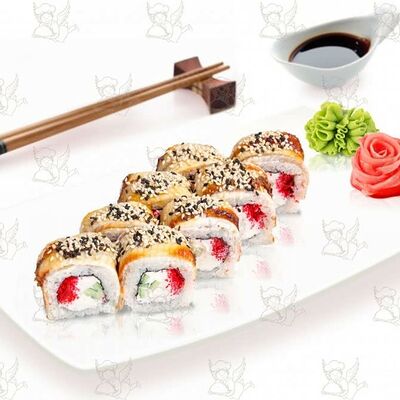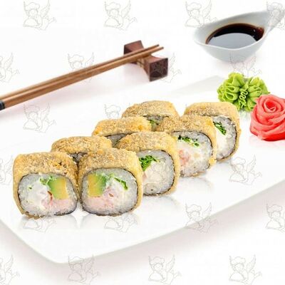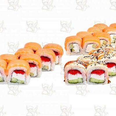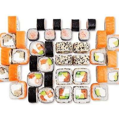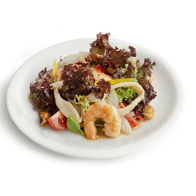 Мидии, бурый лосось, сыр креметта,, чука, икра тобико, соус, кунжут