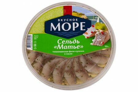 Сельдь Вкусное море филе кусочки в масле Матье 150г, Россия доставка