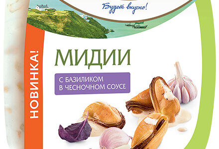 Салат из мяса мидии чилийской вареного с базиликом в чесночном соусе, 150г доставка