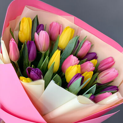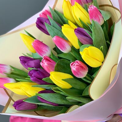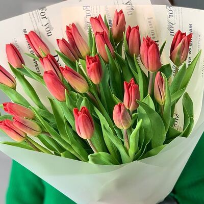 Тюльпан-25 шт., дизайнерская упаковка, любовь флориста