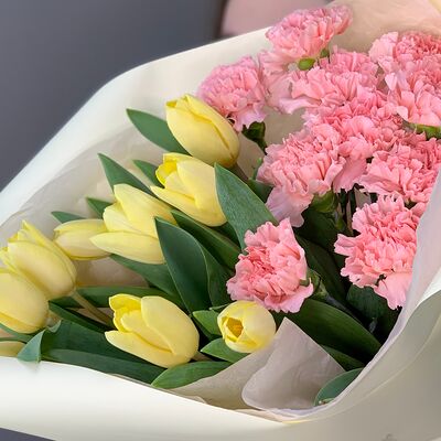 Букет из 25 лимонных тюльпанов доставка