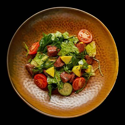Теплый салат с телятиной и овощами доставка