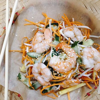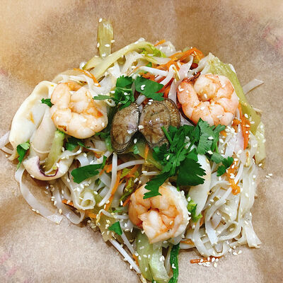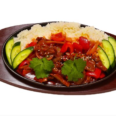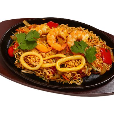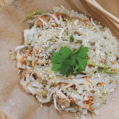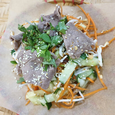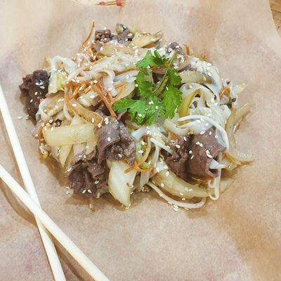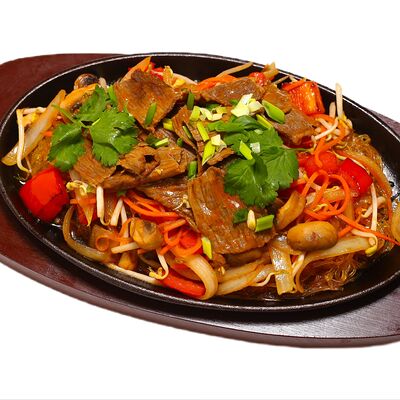 Стеклянная лапша, обжаренная с говядиной и овощами