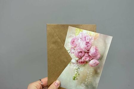 АРТ-открытка Мамочке любимой розовые пионы доставка