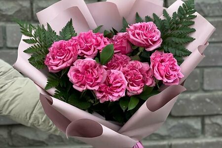 Пионовидные розы с зеленью доставка