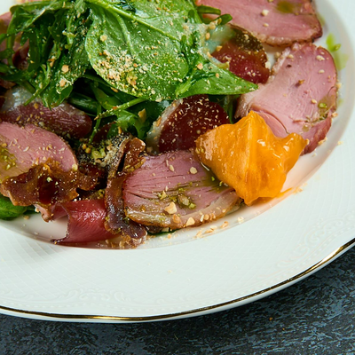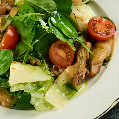 Теплый салат с морепродуктами, черри и миндалем доставка